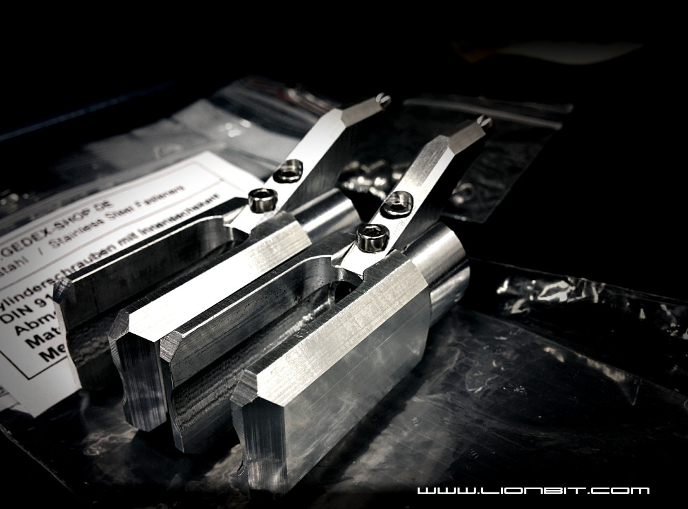 Die Blatthalter haben eine Menge an Gewicht verloren im Vergleich zu den Rohlingen, sind aber etwas schwerer als die vom RJX DFC Kopf. Dafür sind sie schöner und vor allem unzerstörbar! ...hoffe ich zumindest ;)
