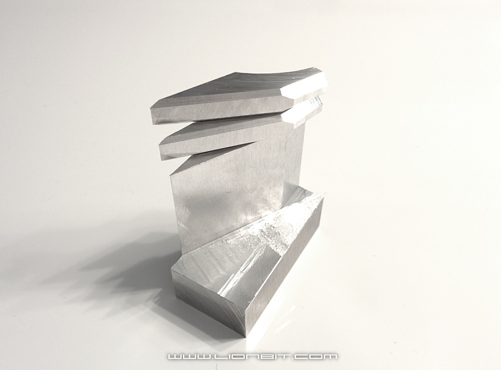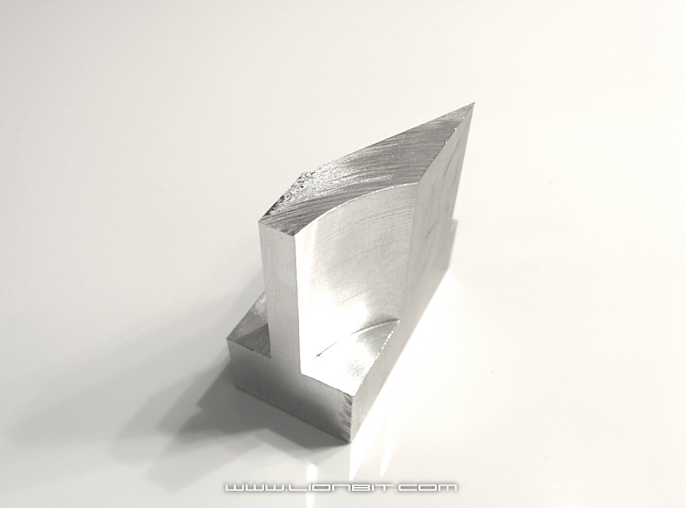Kurze Zeit später schnitt ich die ersten 2 Pitcharme mit dem Nutenfräser vom Profil herunter und fräste wieder große Fasen um das Designkonzept zu untermauern. Später bearbeitete ich die gesägten Flächen noch etwas damit auch diese mit dem Rest des Rotorkopfs harmonieren.