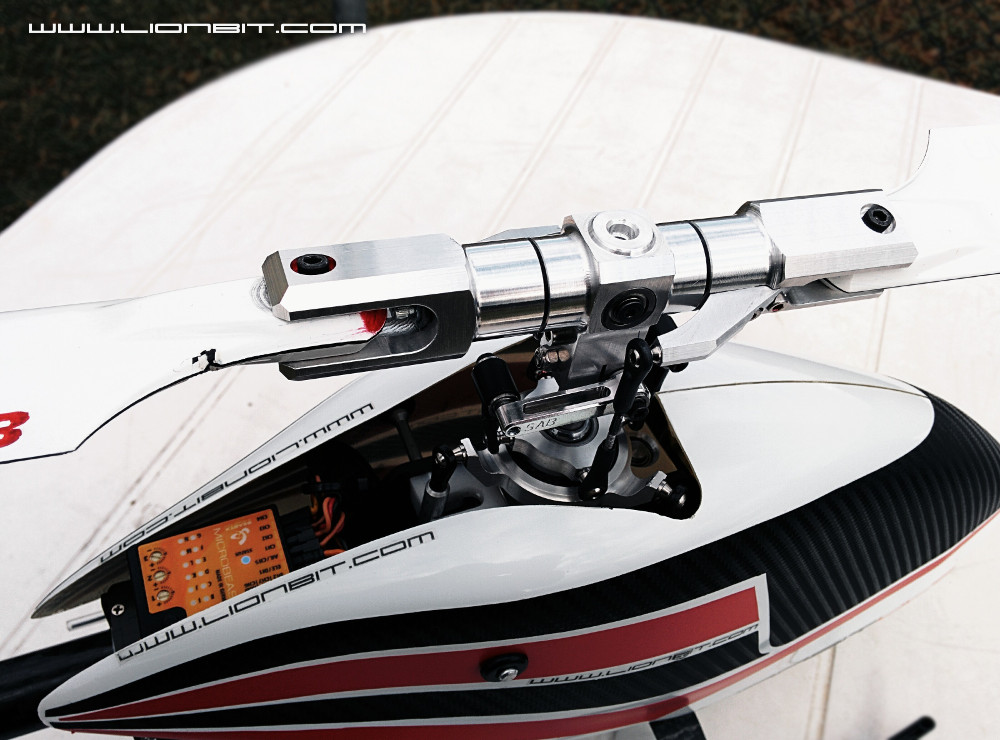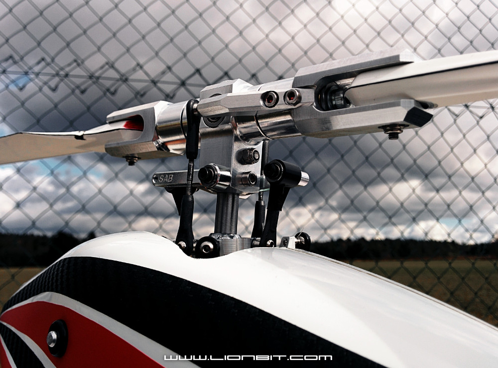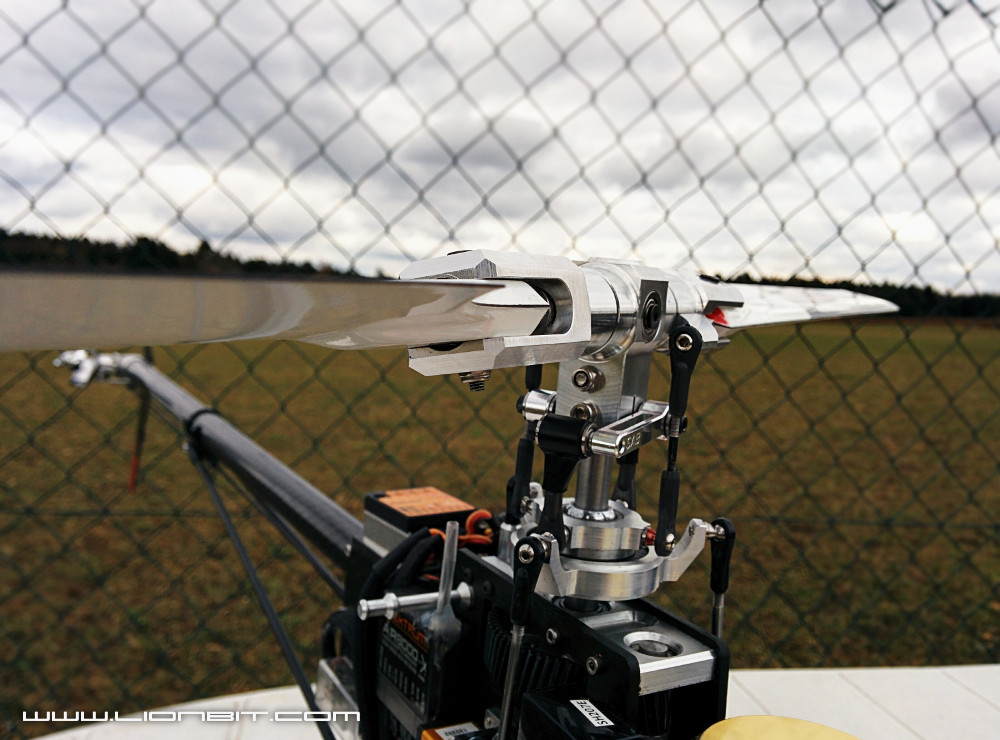 Blatthalter und Pitcharme waren kaum 12 Stunden vor dem Erstflug fertig geworden also schnell alle Schrauben sichern, Lager fetten und den fertigen Rotorkopf einbauen! Schlafen musste ich ja auch noch irgend wann :) Ok, ich musste natürlich noch das Gestänge anfertigen und ein neues Setup am Heli machen aber das war kein Problem. Ich bin so gespannt ob und wie der Rotorkopf funktionieren wird...