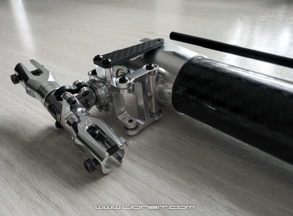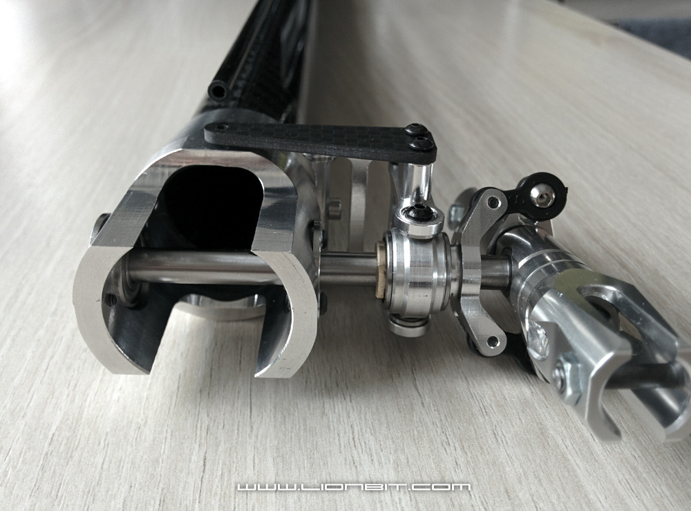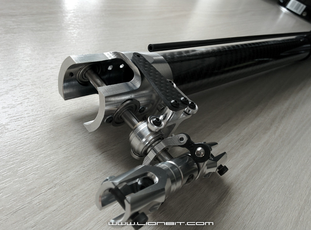 Die Lagerung ist für dieses Modell besser dimensioniert als im LionBit465. Da gab es zeitweise echt großen Verschleiß an Kugellagern, eins an der Zwischenwelle musste ca. alle 20 Flüge dringend gewechselt werden, es war den Belastungen (liegt wohl an meinem Flugstil) einfach nicht gewachsen und das soll im LionBit700 nicht mehr vorkommen! Die Heckrotorwellenlager sind ausgewachsene Bundlager mit großen Kugeln im inneren und dürften alle Belastungen mit dem hochdrehendem Heckrotor problemlos überstehen.