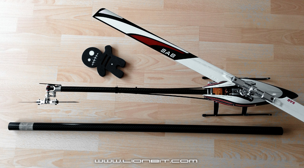 Es geht weiter voran, wenn auch nur in kleinen Schritten. Das Heckrohr kam vor 2 Wochen bei mir an und dieses dicke Ding sieht in echt noch wuchtiger aus als gedacht! Die Heckeinheit wird ein Hybrid aus Eigenbau-Teilen und Zukaufteilen. Die Heckrotorwelle, Nabe und Blatthalter haben sich im kleinen LionBit465 schon sehr positiv bemerkbar gemacht, das Konzept mit der gedämpften Blattlagerwelle am Heck finde ich sehr gelungen und so soll es am 700er auch weiter gehen. Nur mit besserer Anlenkung...