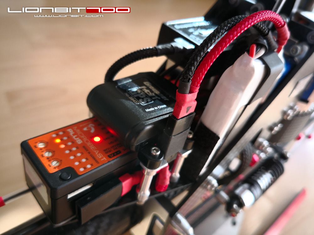 SLS Quantum 2S 500mAhEine ganze Weile überlegte ich mir wieder zurück zum BEC Akku zu wechseln, aber das Gewicht ist einfach ein no-go. Ich erfuhr aber dass man am BEC-Ausgang des Graupner +T 160HV Cool ab Firmware Version 2.x einen Stützakku ohne Diode nutzen kann. Nach weiteren Recherchen entschied ich mich dann für diese Lösung. Als Stützakku wird ein SLS Quantum 2S-LiPo mit 500 mAh und 30/60C die Bordspannung stabilisieren und notfalls auch noch den Heli steuerbar machen wenn der Motor oder Antriebsakku versagt. Dieser kleine Akku bietet noch mehr Vorteile denn er ist kleiner und leichter als der 50F R2-Buffer und er liefert mehr Strom.