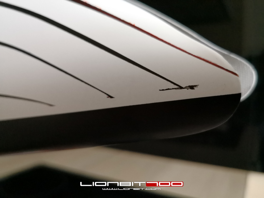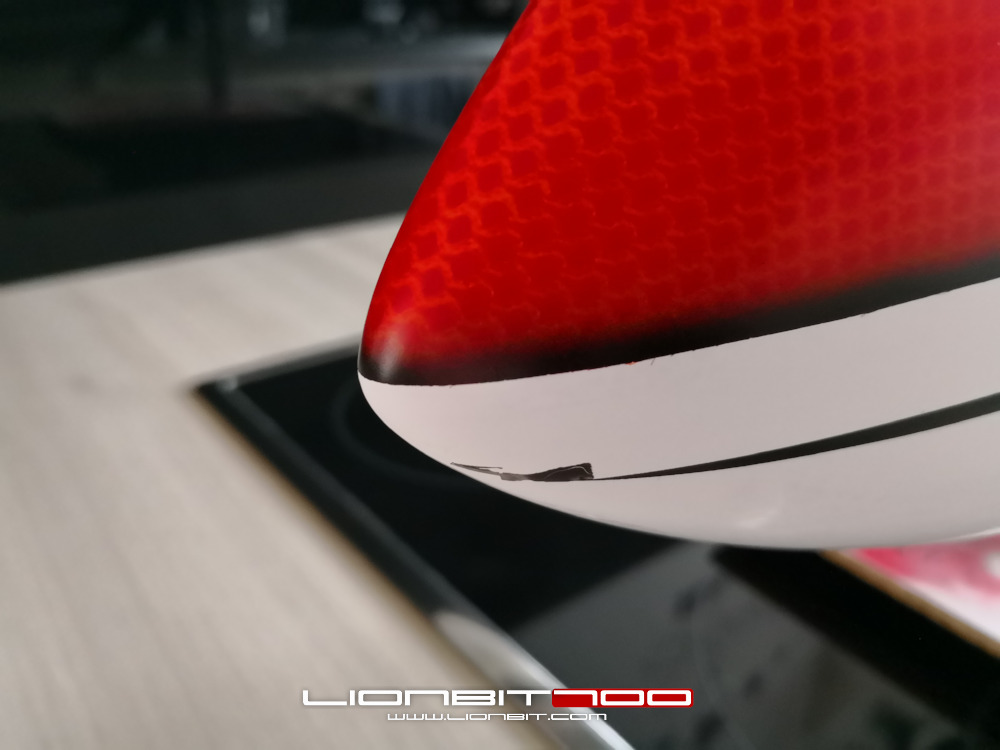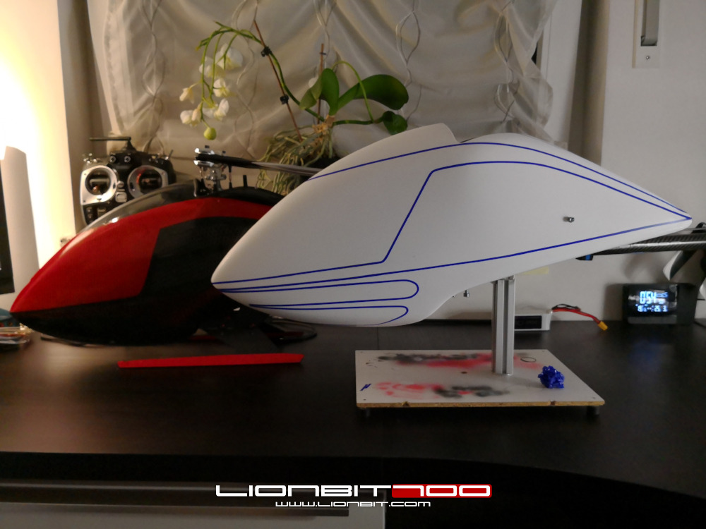 Haubendesign V4.0 mit FehlernOhne Malheur ging es auch dieses mal nicht! Es ist wohl Farbe unter die Linienbänder gelaufen was eigentlich nicht passieren sollte, eventuell war auch zu viel Farbe (zu nass) an diesen Stellen. Naja. Es konnte relativ gut mit einem Skalpell weggekratzt werden, ob man das so macht, weiß ich nicht aber es hat funktioniert.